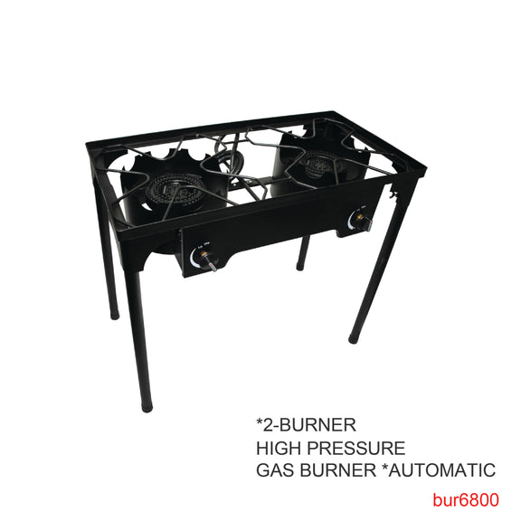 Sturdy cast iron stove with two burners, designed for high-temperature cooking and durability. Perfect for outdoor use, camping, or rustic kitchens where power and toughness are needed.
