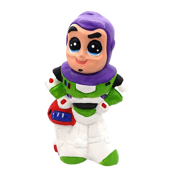 Alcancía de Yeso - Buzz Lightyear – Contenedor de ahorros con la figura del valiente guardián espacial Buzz Lightyear, personaje icónico de Toy Story. Ideal para niños, fans de Pixar y coleccionistas de figuras animadas. Hecha de yeso y pintada a mano con detalles fieles al personaje.