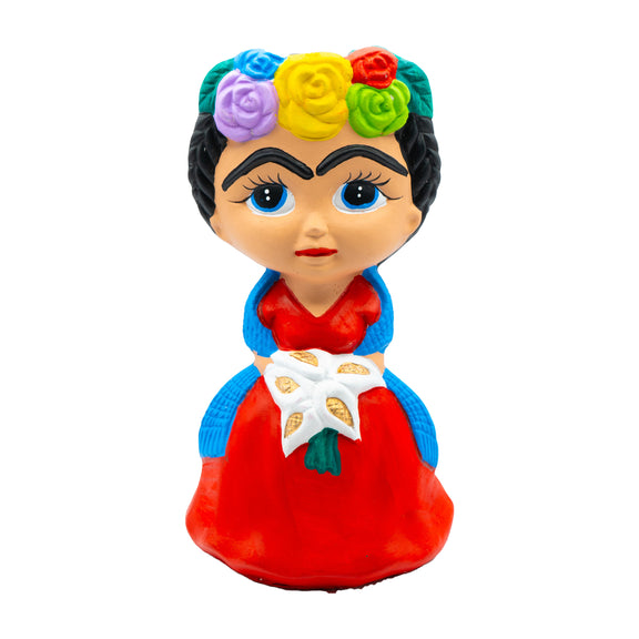 Alcancía de Yeso - Frida Kahlo MX – Contenedor de ahorros con la figura de Frida Kahlo, ícono del arte y la cultura mexicana. Ideal para admiradores de su legado, decoraciones artísticas o coleccionistas. Hecha de yeso y pintada a mano con detalles coloridos y simbólicos.