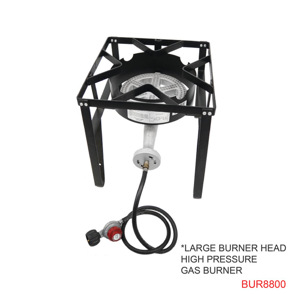 High-pressure gas burner designed to provide a strong and consistent flame, ideal for high-temperature cooking. Perfect for commercial or outdoor use, made with durable materials to ensure strength and efficiency.