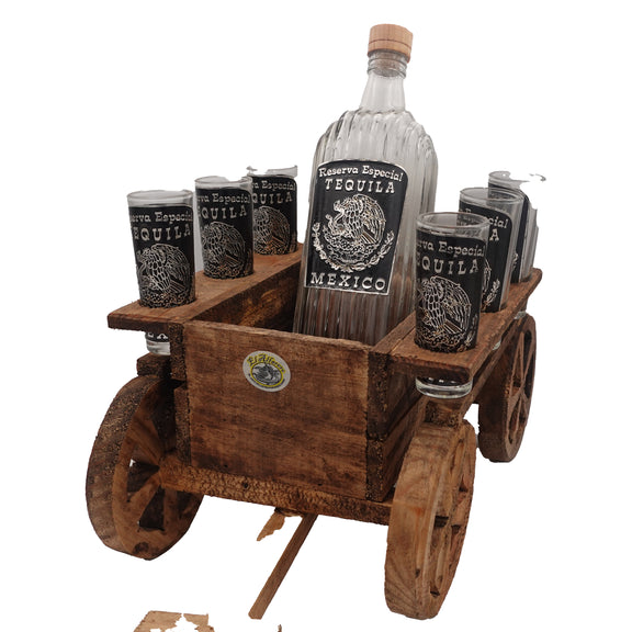Cantina artesanal de madera con diseño inspirado en una carreta, que combina funcionalidad y estilo rústico. Ideal para almacenar y servir bebidas mientras agrega un toque auténtico y decorativo a cualquier espacio. Perfecta para fiestas o decoración temática.