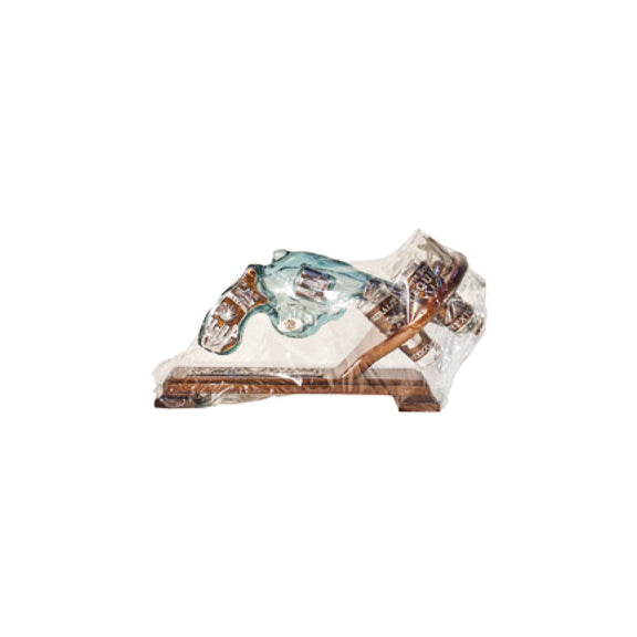Cantina artesanal con diseño en forma de revólver, que combina estilo audaz y creatividad. Ideal para almacenar y servir bebidas, mientras aporta un toque único y llamativo a cualquier espacio. Perfecta para coleccionistas o amantes de lo inusual.