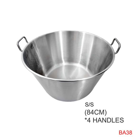 80 cm stainless steel cazo, designed for cooking large quantities of food, ideal for events or large-scale preparations. Perfect for broths, frying, and traditional recipes. Its sturdy and wide design ensures even and efficient cooking.