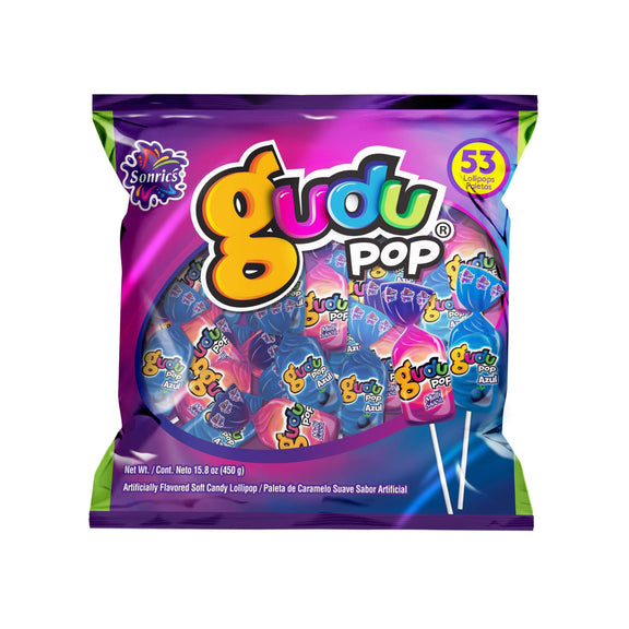Gudupop MIX brings a fun variety of lollipops with gum centers in assorted flavors perfect for sharing or resale. Each case includes 15 bags with 53 pops each. A burst of flavor in every lick!