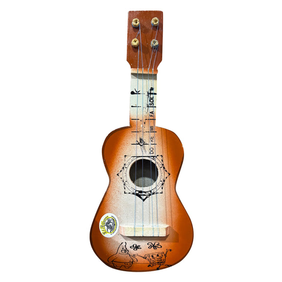 Small guitar made of wood, perfect for kids or beginners looking to explore music. It delivers a clear and authentic sound, with a compact and durable design for ease of use and portability. Ideal for recreational or educational activities.