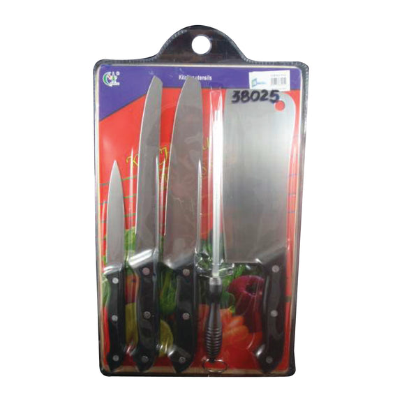 Juego de cuchillos con tablero, incluye 6 piezas esenciales para cortes precisos en la cocina. Diseñado para comodidad y eficiencia, ideal para chefs caseros y profesionales.