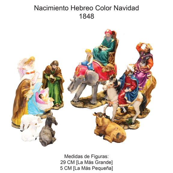Conjunto artesanal que representa el nacimiento de Jesús, inspirado en el estilo hebreo y decorado con colores navideños. Cada figura está elaborada con detalles cuidadosamente pintados, ideal para ambientar hogares y espacios religiosos durante las festividades.