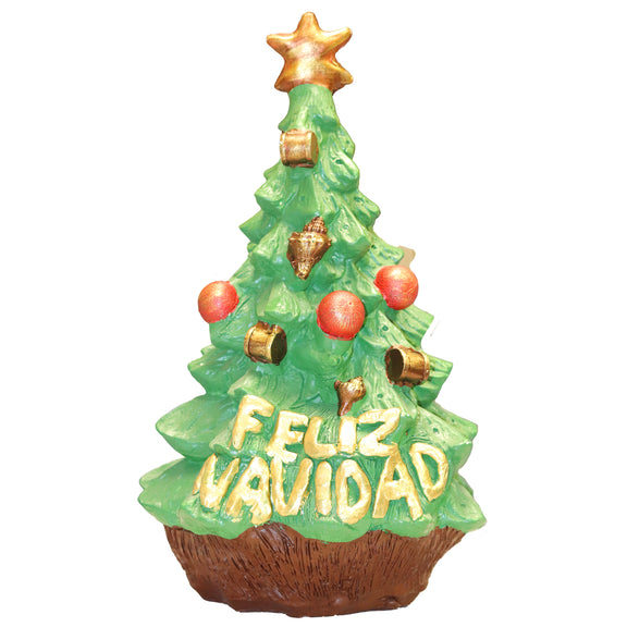 Figura decorativa de pino navideño hecha en yeso con diseño en forma de "V", ideal para agregar un toque artesanal y elegante a la decoración navideña. Acabados detallados y resistentes, perfectos para interiores o centros de mesa.