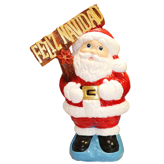 Figura decorativa de Santa Claus con un letrero en diseño estilo "V", ideal para añadir un toque festivo y acogedor a la decoración navideña. Fabricada en materiales duraderos con detalles coloridos que realzan su atractivo y espíritu navideño.