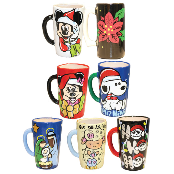 Decorative mug with a Christmas-themed design, ideal for serving hot beverages like coffee or hot chocolate during the holidays. Made with durable materials and a festive finish that brings cheer to any celebration.