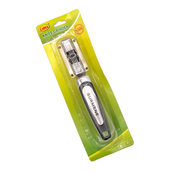 Compact and effective knife sharpener, designed to keep your knives sharp like new. Easy and safe to use, ideal for home or professional use. An essential kitchen tool.