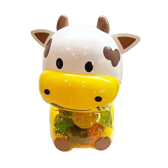 Assorted Jelly Cow Fruit Shape features fruity jellies in playful fruit shapes, packed in a cute cow-shaped container. Each unit holds 28.8 oz with 19 pieces and comes in cases of 6 packs. Fun and flavor in every shape!