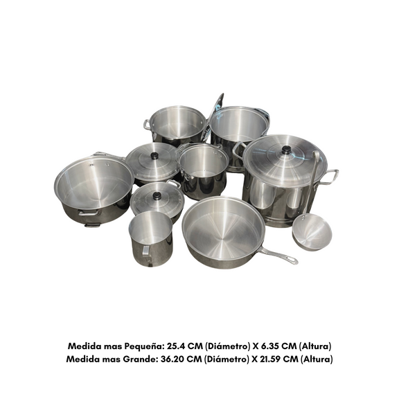 Juego de cocina de 10 piezas elaborado en aluminio, ideal para satisfacer todas tus necesidades culinarias. Incluye ollas, sartenes y utensilios esenciales para cocinar con eficiencia y estilo en cualquier cocina.