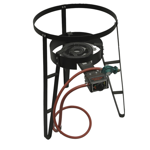 High-stand burner measuring 32x20 cm, designed to provide more convenience when cooking with large pots and pans. Burner head not included, ideal for professional or outdoor use. Durable construction ensures stability and long-lasting use.
