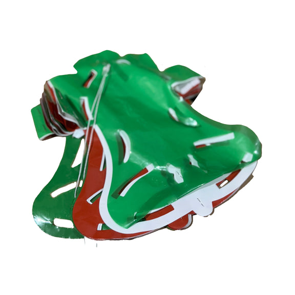 Campana decorativa acompañada de una tira de plástico colorida, ideal para adornar espacios festivos o eventos especiales. Su diseño ligero y vibrante aporta un toque alegre y tradicional.