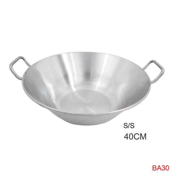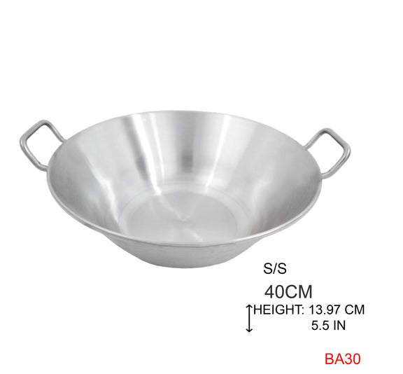 40 cm stainless steel cazo, perfect for cooking over an open flame or stove. Ideal for preparing broths, frying, or traditional recipes. Its deep design ensures even heat distribution and easy cleaning.