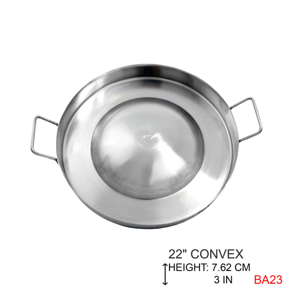 Convex griddle with panza up design, perfect for cooking tortillas, warming foods, and other traditional dishes. Provides even heat distribution and durability.
