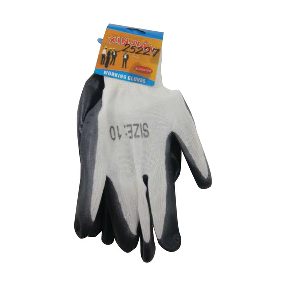 Durable gloves designed to provide protection and a secure grip for work tasks. The rubber coating ensures durability and improved control when handling tools or materials. Perfect for industrial or home use.