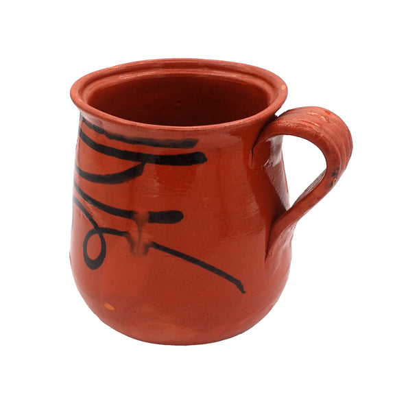 One-liter clay pitcher decorated with traditional Mexican motifs. Perfect for serving water, juices, or beverages with an authentic and artisanal touch. Handmade in Mexico, durable and easy to clean.