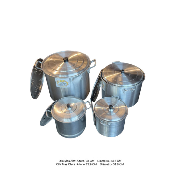 Juego de Set de 5 Vaporeras 70-45-34-28-26 - Set de cinco vaporeras en tamaños variados, diseñadas para preparar alimentos al vapor de manera saludable y eficiente. Construcción resistente y diseño apilable para facilitar su almacenamiento.