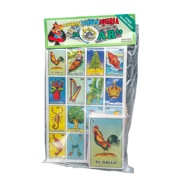 Juego de lotería en tamaño compacto con 20 cartas, decorado con un diseño tradicional del Gallo. Perfecto para reuniones familiares y actividades recreativas. Su tamaño pequeño y bolsa incluida lo hacen fácil de transportar y almacenar.