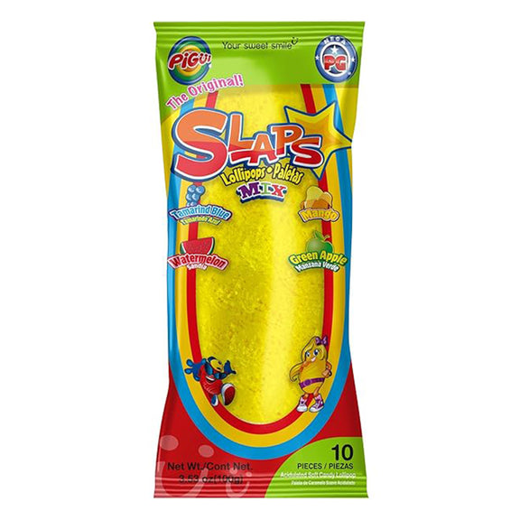 Mega PG Slaps Tropical Mix comes with 25 packs of 10 candy slaps each.
