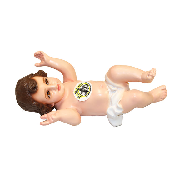 Figura del Niño Dios de 20 cm de altura, elaborada con detalles finos y acabados de alta calidad. Ideal para altares navideños, nacimientos o como pieza central en la decoración de temporada.