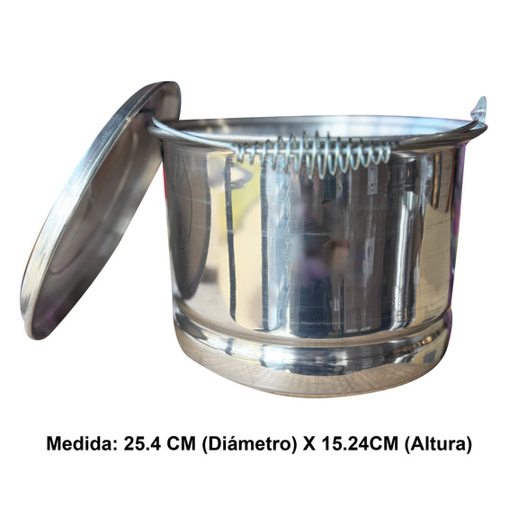 Olla de aluminio tamaño #22 con tapa incluida, ideal para preparar comidas en grandes cantidades. Su material resistente garantiza una cocción uniforme, siendo una excelente opción para eventos y reuniones familiares.