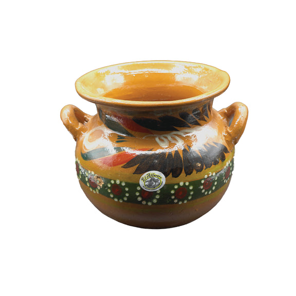 Medium handcrafted clay pot, perfect for cooking soups, stews, and broths with authentic flavor. Its traditional design retains heat and enhances the taste of your dishes. Handmade in Mexico, it combines functionality and beauty for your kitchen. Durable and easy to clean.