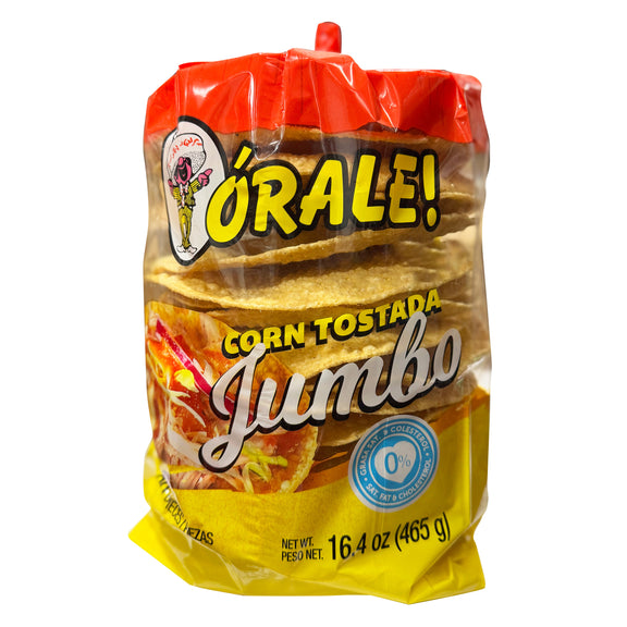 Órale Jumbo Tostada ofrece tostadas extra grandes, crujientes y listas para acompañar tus platillos favoritos como ceviche, frijoles o guacamole. Cada paquete contiene 9 tostadas. ¡Tamaño jumbo para sabor grande!