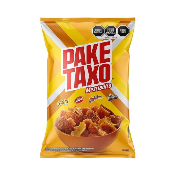 Paquetaxo Mezcladito Amarillo de 170 g es una mezcla irresistible de botanas como Cheetos, Sabritones, Rancheritos y más, con un sabor intenso y crujiente. Ideal para compartir en reuniones o disfrutar en cualquier momento. ¡Diversión y sabor en cada puñado!