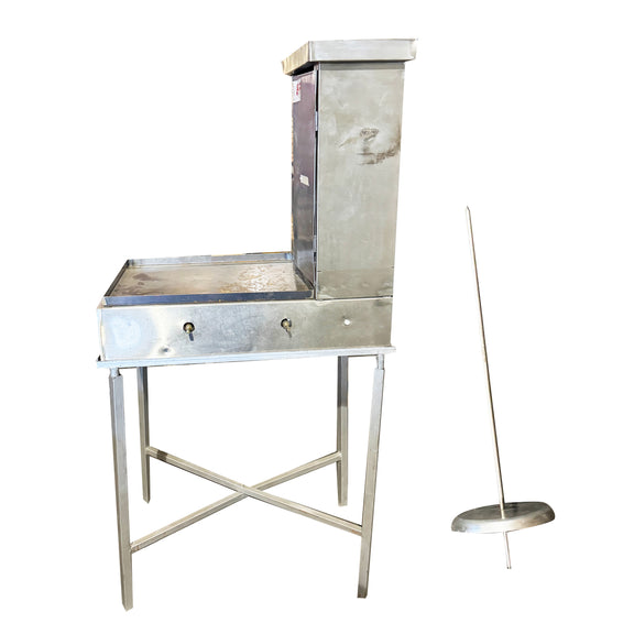 Griddle for Pastor and Base – Sturdy cooking surface designed for efficient preparation of pastor. Includes base for stability and ease of use in home or commercial kitchens.