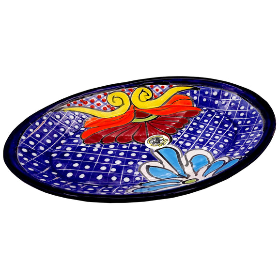 Elegant Talavera oval platter showcasing traditional hand-painted patterns in vibrant colors. A versatile piece, perfect for serving appetizers, main dishes, or desserts with a touch of Mexican charm. Crafted from durable ceramic, it combines beauty and practicality. A stunning addition to any table setting.