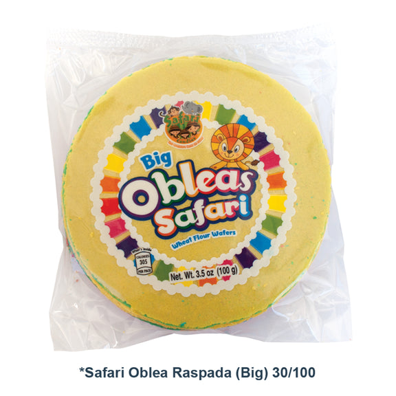 Enjoy the crispy, light texture of Safari Oblea Raspada (Big)! This pack contains 100 pieces of large, thin wafers that are perfect for snacking or pairing with your favorite fillings. With 30 individual servings, these obleas are a versatile treat that can be enjoyed on their own or as a base for creative desserts. Crisp, delicious, and perfect for sharing!