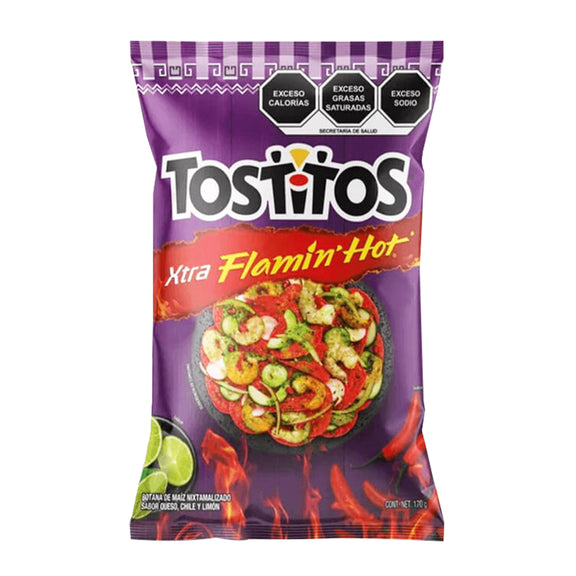 Tostitos Flamin' Hot de 170 g combinan el crujido clásico de las tortillas con el intenso sabor picante que enciende tus sentidos. Perfectos para acompañar con salsas o disfrutar solos. ¡Una botana con fuego en cada bocado!