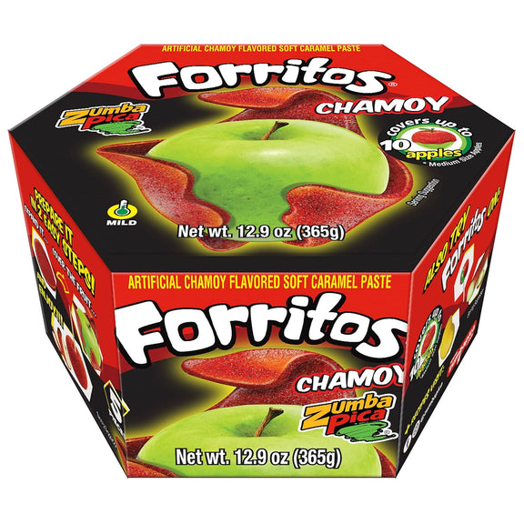 Zumba Pica Forritos Chamoy son deliciosas pastillas de chamoy ideales para cubrir frutas, gomitas o tamarindos. Cada paquete incluye 5 piezas y se presenta en cajas de 16 unidades. ¡El toque picosito que transforma cualquier snack!