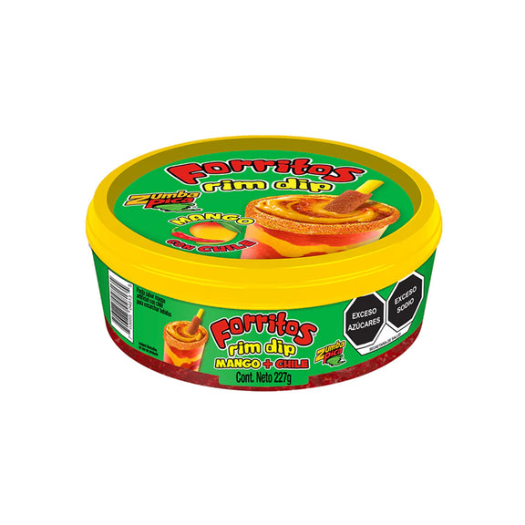 Zumba RIM Dip Mango es un sabroso dip en polvo con sabor a mango y chile, perfecto para escarchar bebidas o acompañar frutas. Cada bote contiene 227g y se presenta en cajas de 16 unidades. ¡Sabor tropical con un toque picante irresistible!